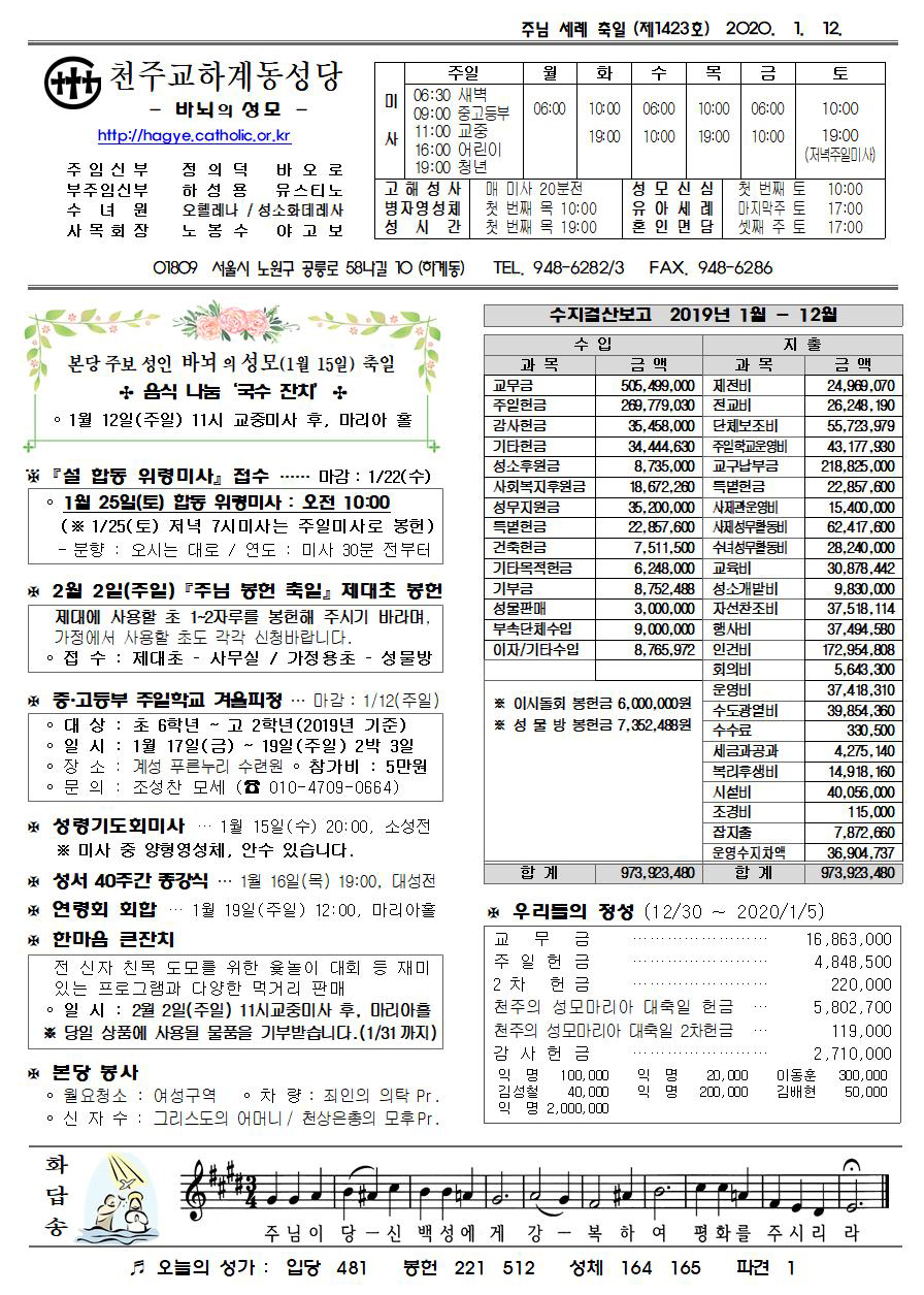제1423호(2020. 01.12) 하계동성당주보 : 주님 세례 축일