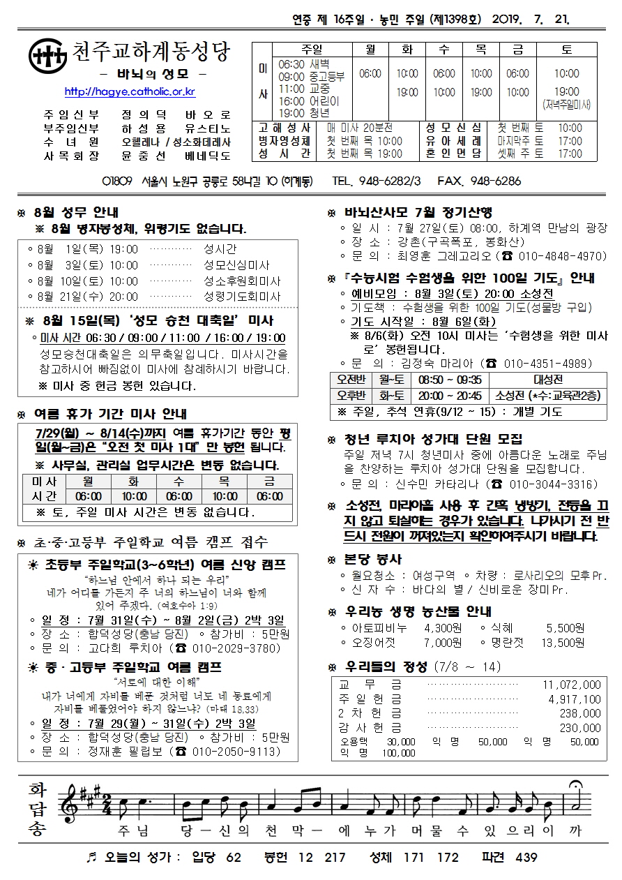 제1398호(2019. 7. 21.) 하계동성당주보 : 연중 제 16주일 / 농민주일