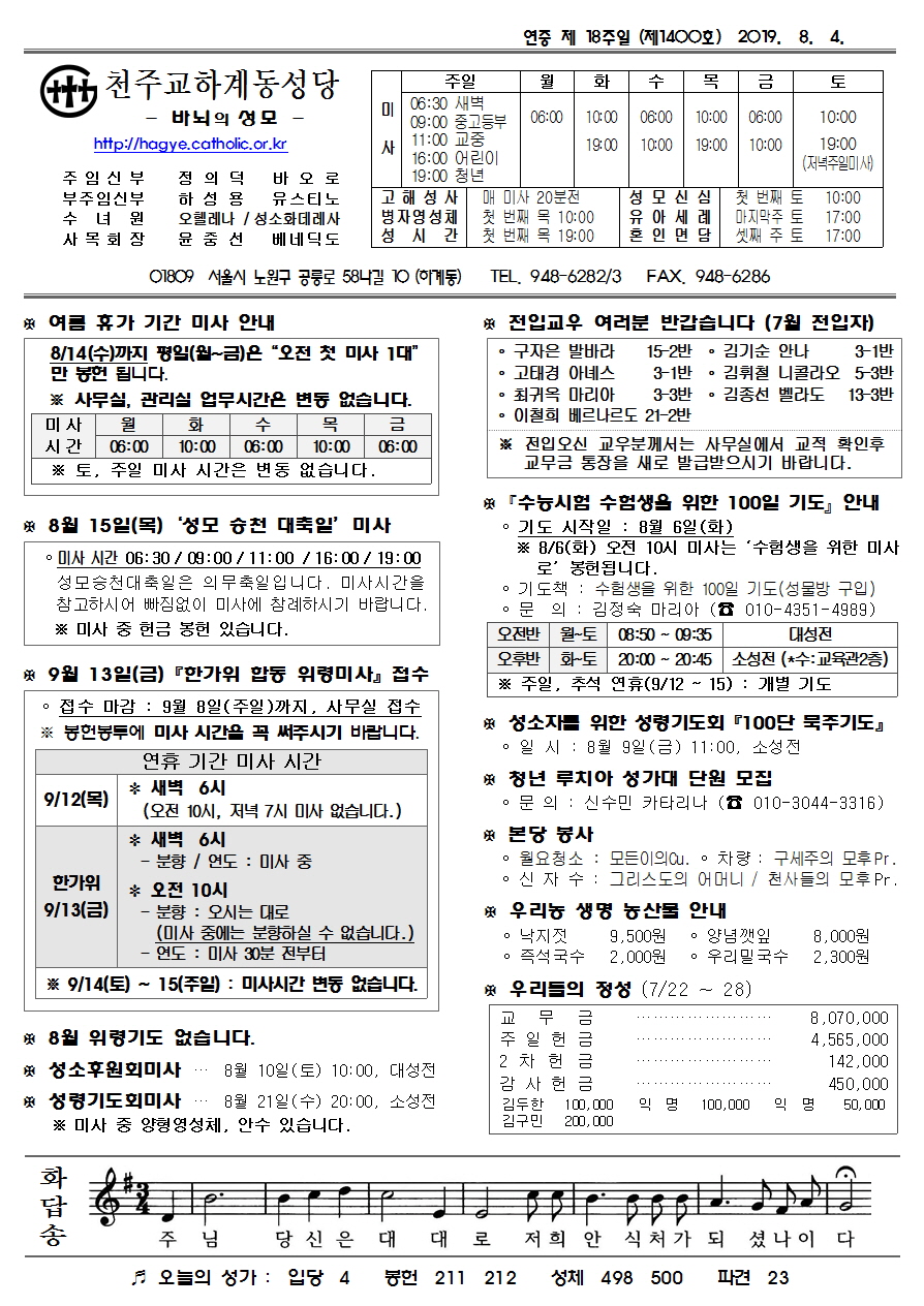 제1400호(2019. 8. 4.) 하계동성당주보 : 연중 제 18주일