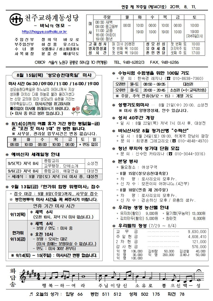 제1401호(2019. 8. 11.) 하계동성당주보 : 연중 제 19주일
