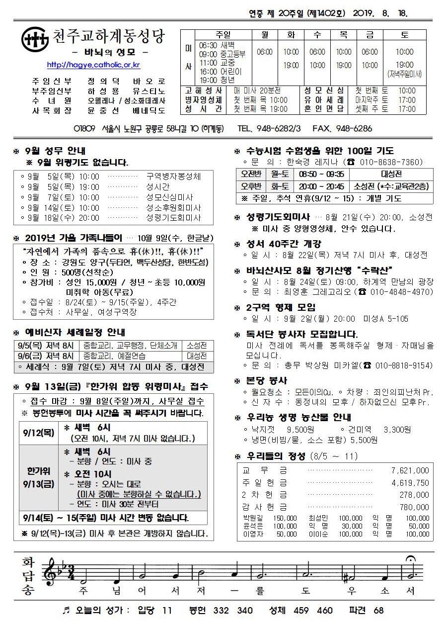 제1402호(2019. 8. 18.) 하계동성당주보 : 연중 제 20주일