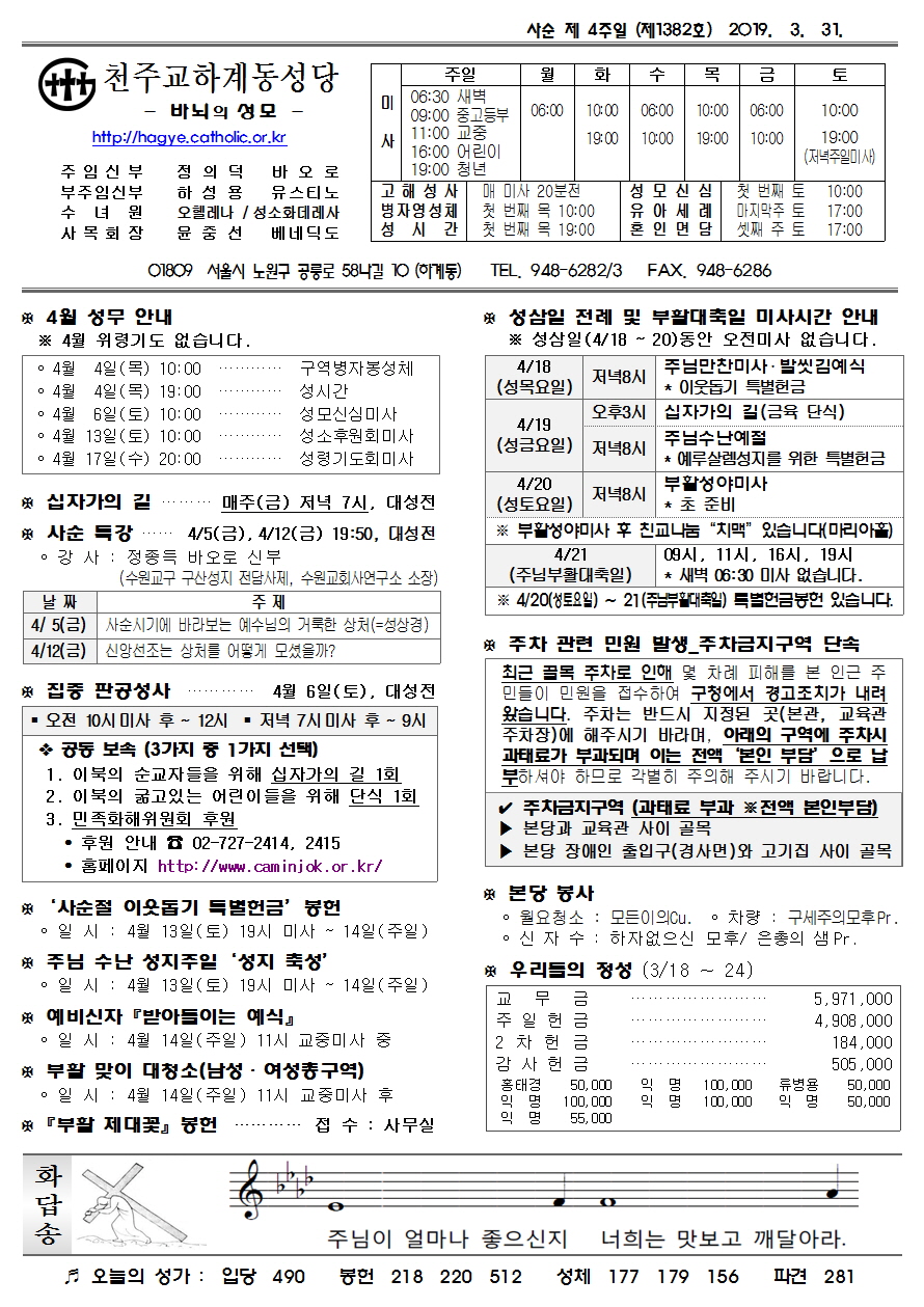 제1382호(2019. 3. 31.) 하계동성당주보 : 사순 제 4주일