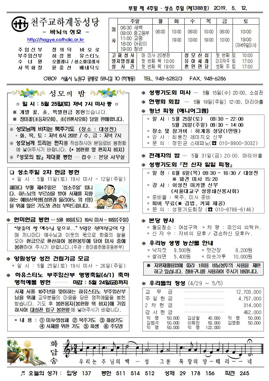 제1388호(2019. 5. 12.) 하계동성당주보 : 부활 제 4주일 / 성소 주일