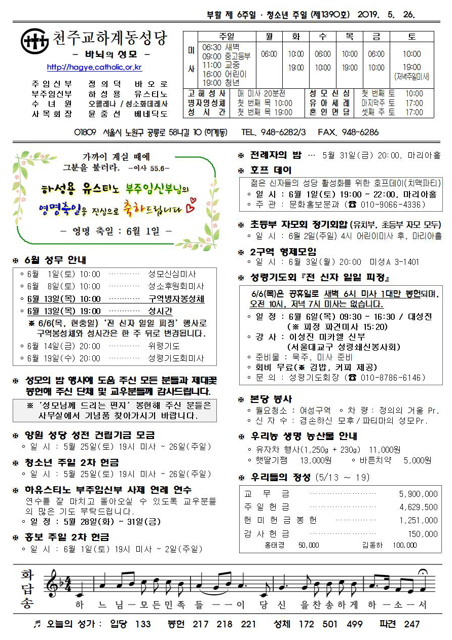 제1390호(2019. 5. 26.) 하계동성당주보 : 부활 제 6주일 / 청소년 주일