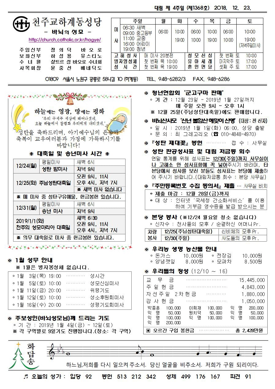제1368호(2018. 12.23.) 하계동성당주보 : 대림 제 4주일
