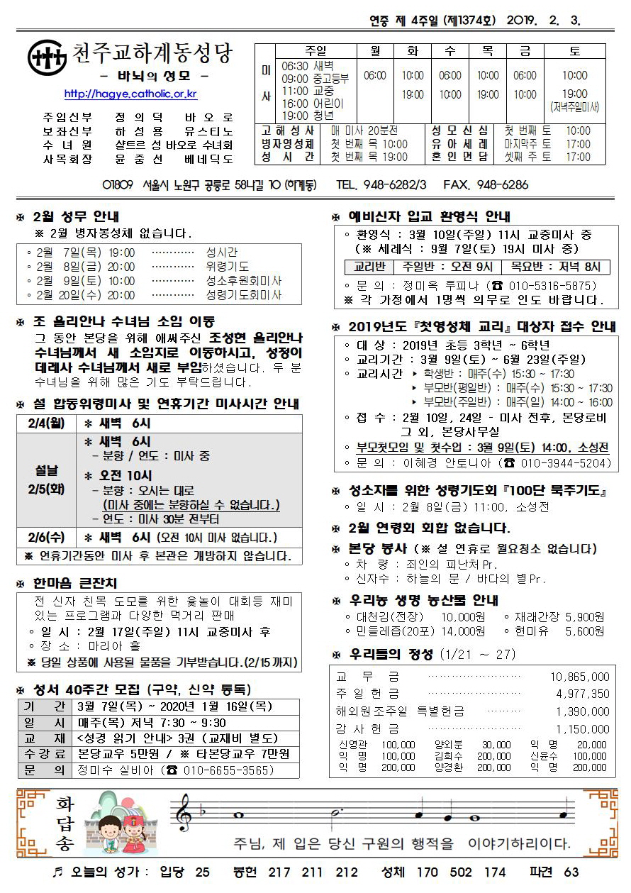 제1374호(2019. 2. 3.) 하계동성당주보 : 연중 제 4주일