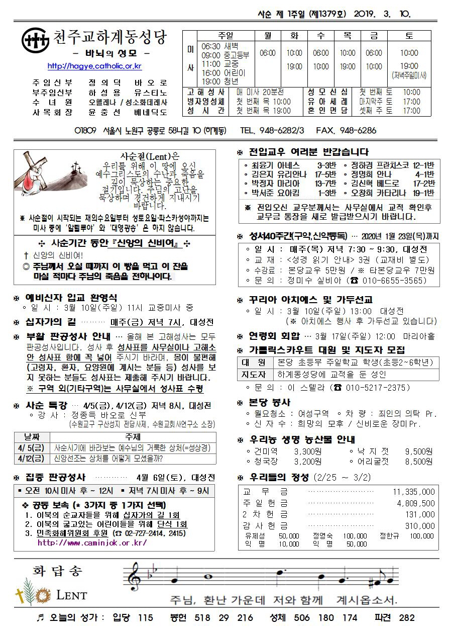 제1379호(2019. 3. 10.) 하계동성당주보 : 사순 제 1주일