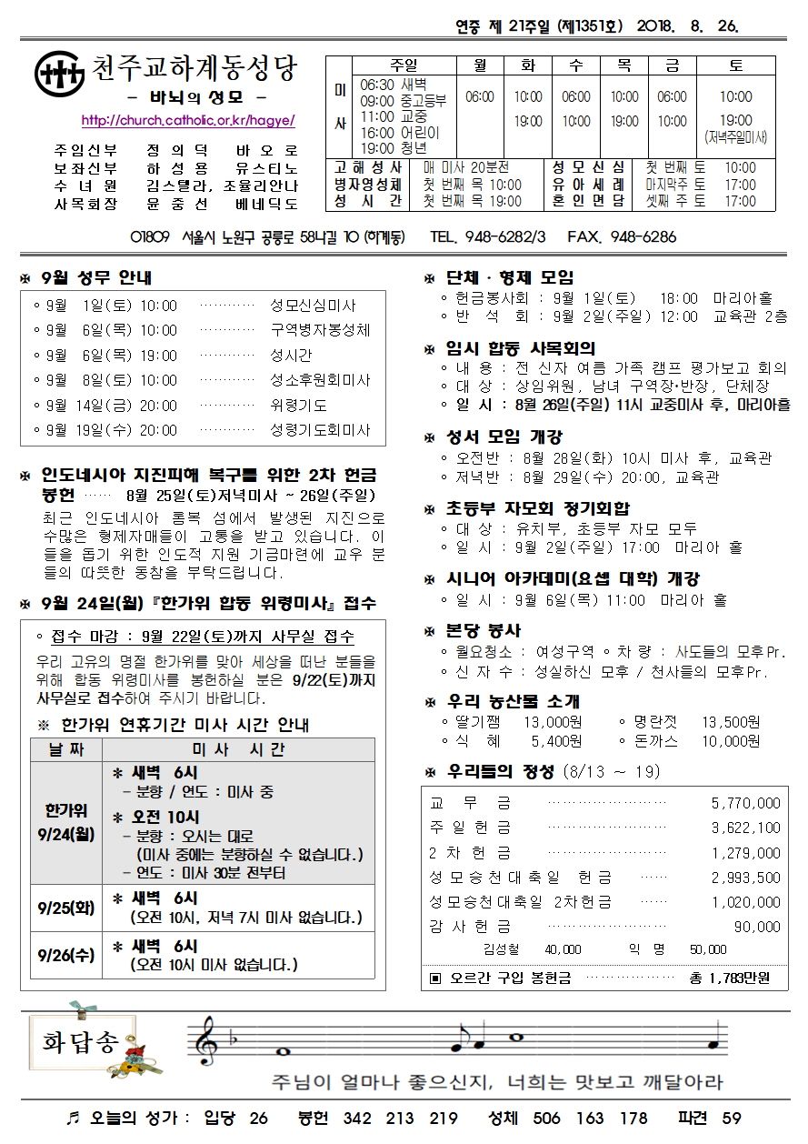 제1351호(2018. 8.26.) 하계동성당주보 : 연중 제 21주일