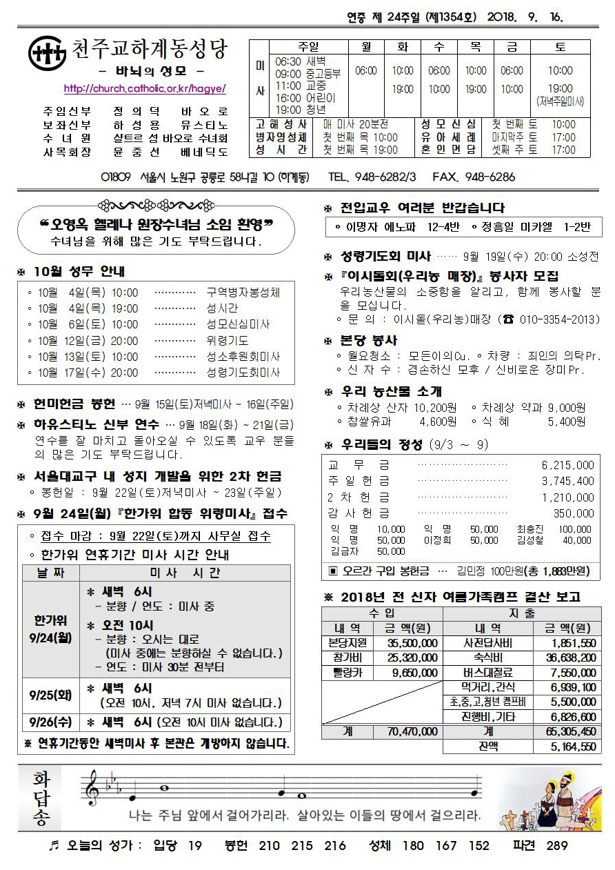 제1354호(2018. 9.16.) 하계동성당주보 : 연중 제 24주일
