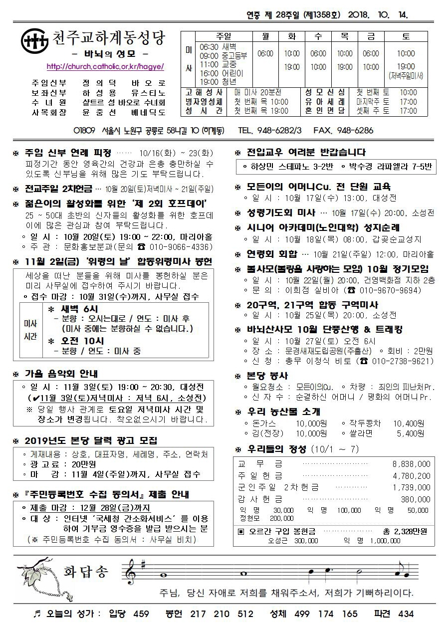 제1358호(2018. 10. 14.) 하계동성당주보 : 연중 제 28주일