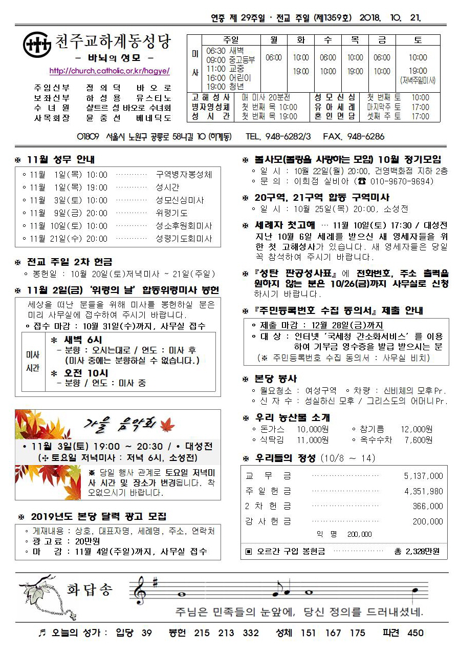 제1359호(2018. 10. 21.) 하계동성당주보 : 연중 제 29주일 / 전교주일