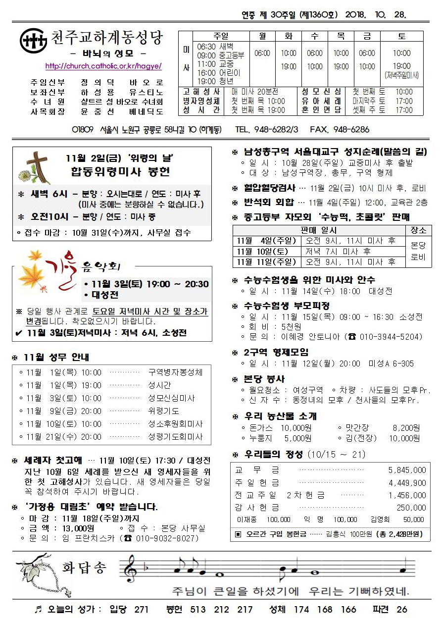 제1360호(2018. 10. 28.) 하계동성당주보 : 연중 제 30주일