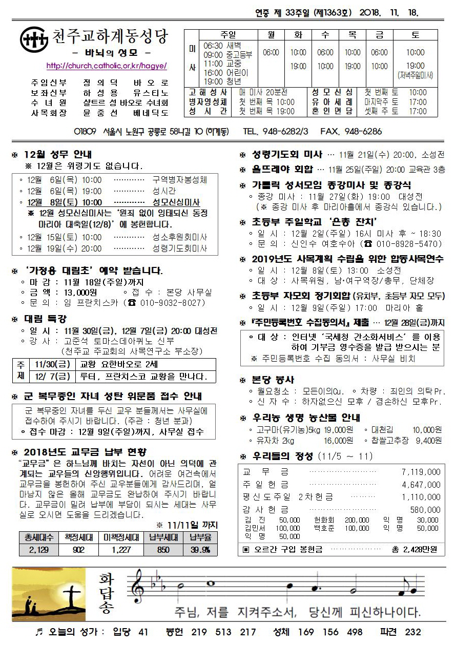 제1363호(2018. 11. 18.) 하계동성당주보 : 연중 제 33주일