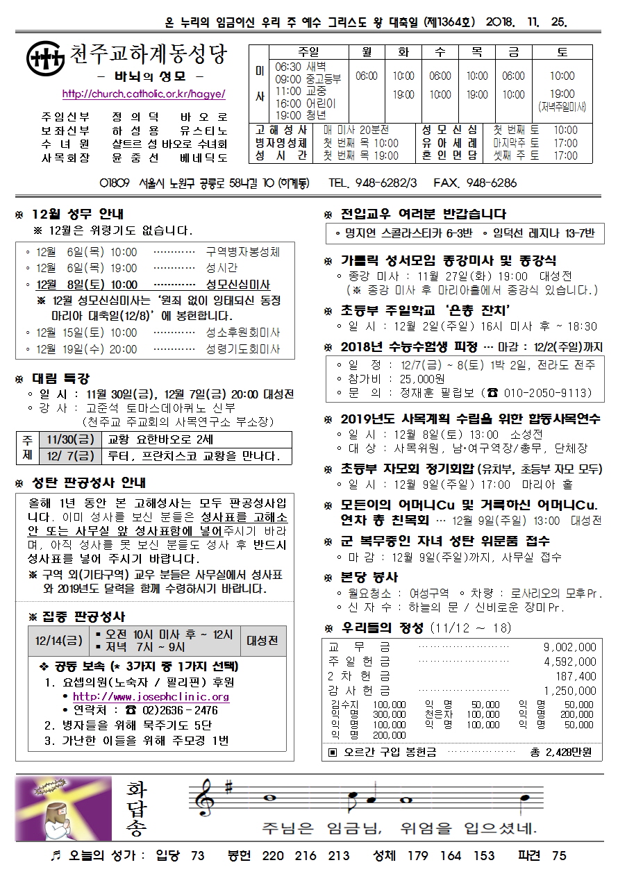 제1364호(2018. 11. 25.) 하계동성당주보 : 온 누리의 임금이신 우리 주 예수 그리스도 왕 대축일