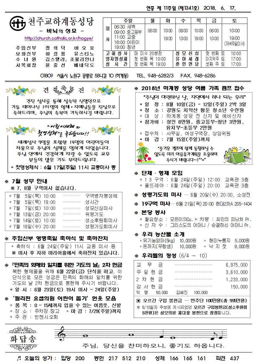 제1341호(2018. 6.17.) 하계동성당주보 : 연중 제 11주일