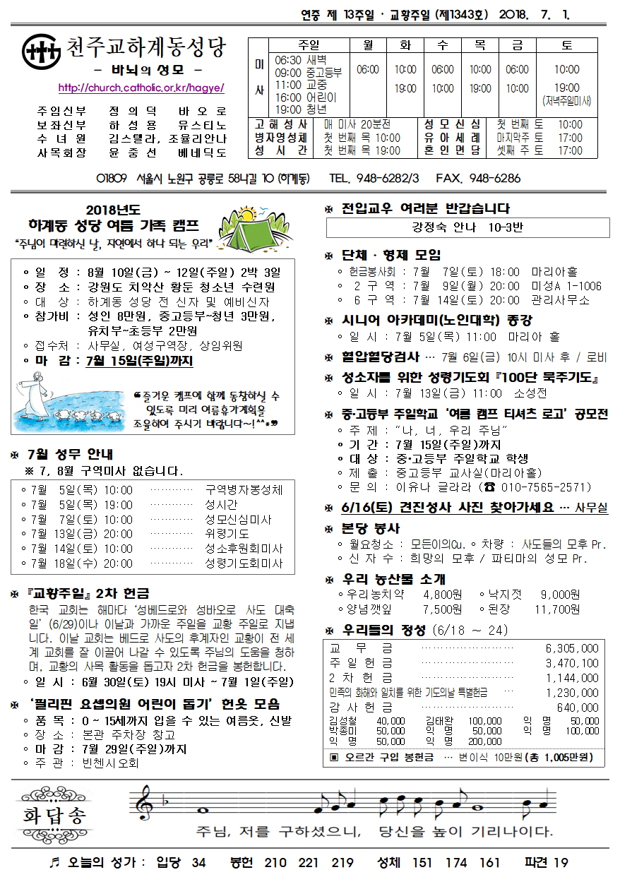 제1343호(2018. 7. 1.) 하계동성당주보 : 연중 제 13주일 / 교황주일