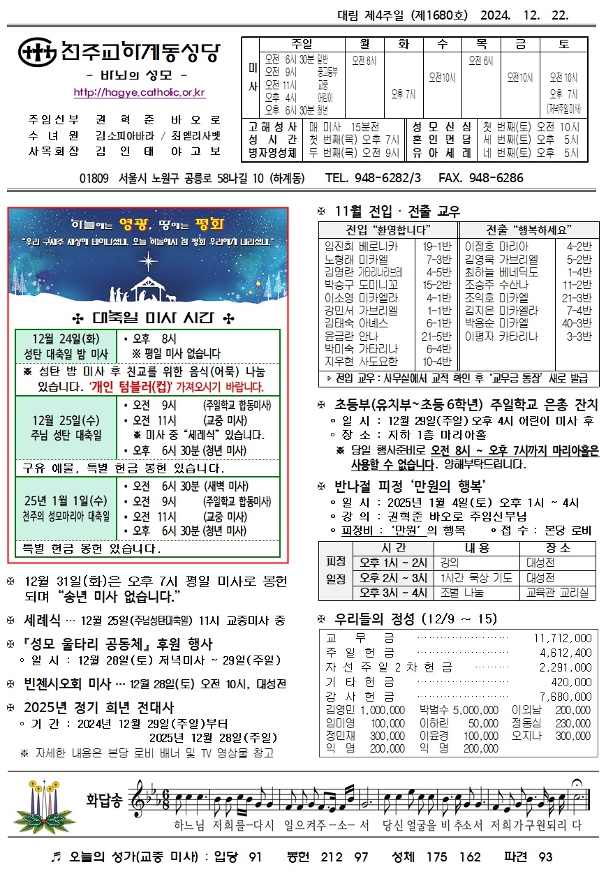 제1680호(2024. 12. 22.) 하계동성당주보 : 대림 제4주일