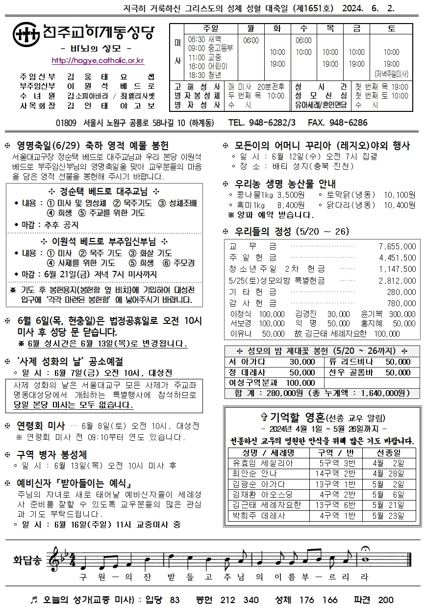 제1651호(2024. 6. 2.) 하계동성당주보 : 지극히 거룩하신 그리스도의 성체 성혈 대축일