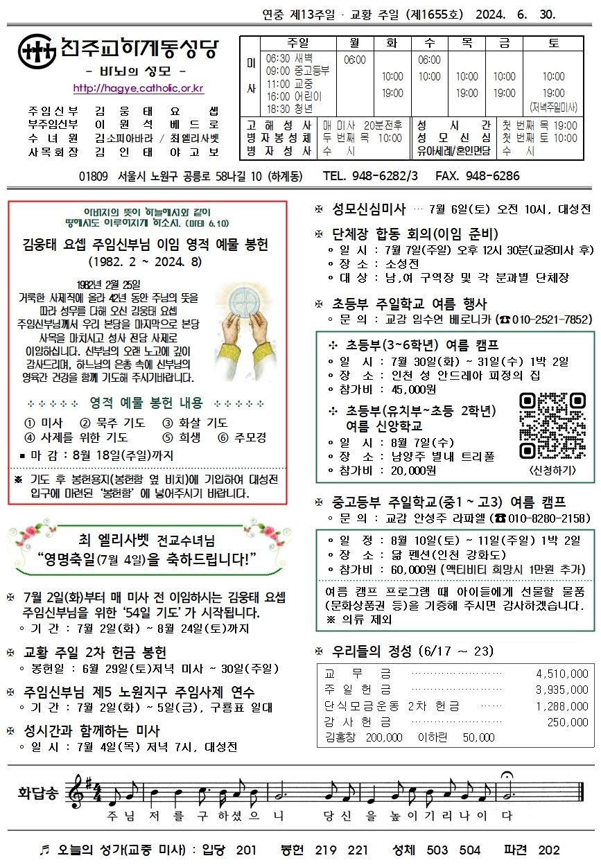 제1655호(2024. 6. 30.) 하계동성당주보 : 연중 제13주일 · 교황 주일