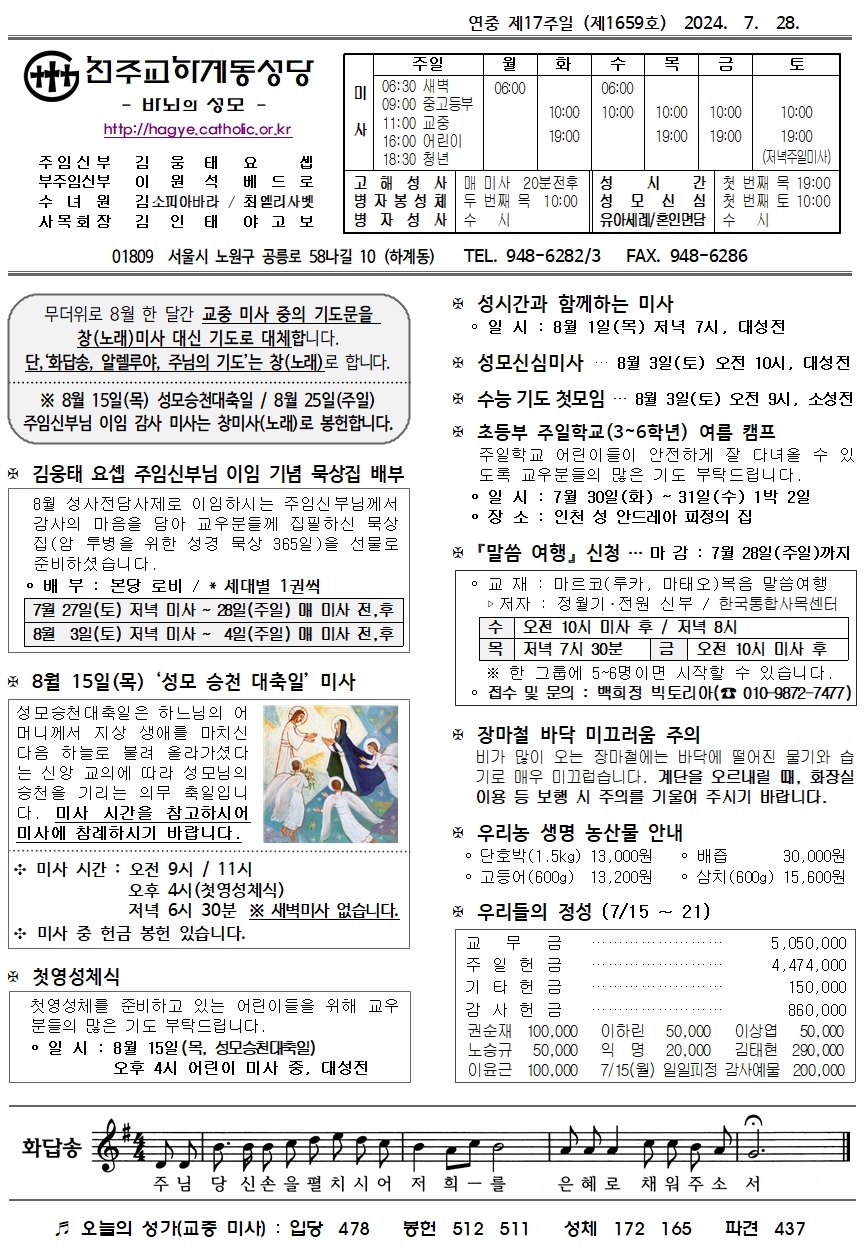 제1659호(2024. 7. 28.) 하계동성당주보 : 연중 제17주일