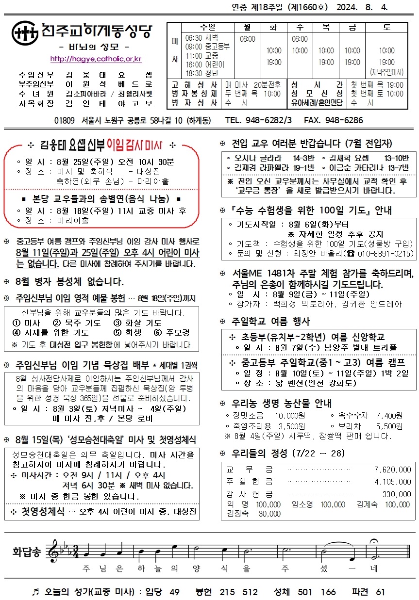 제1660호(2024. 8. 4.) 하계동성당주보 : 연중 제18주일