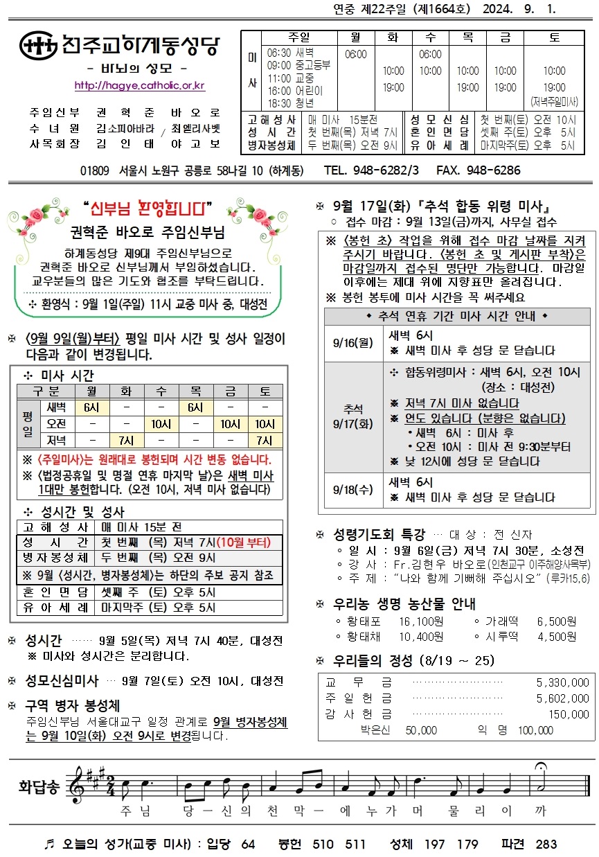 제1664호(2024. 9. 1.) 하계동성당주보 : 연중 제22주일