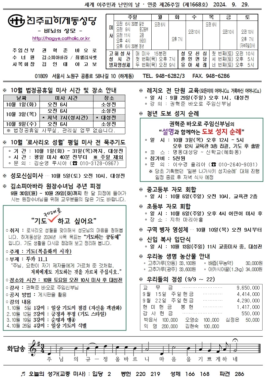 제1668호(2024. 9. 29.) 하계동성당주보 : 세계 이주민과 난민의 날 · 연중 제26주일