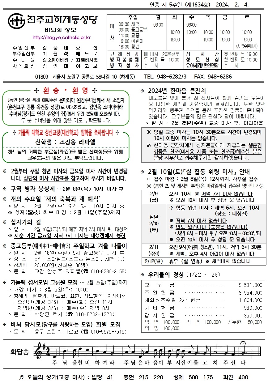 제1634호(2024. 2. 4.) 하계동성당주보 : 연중 제 5주일