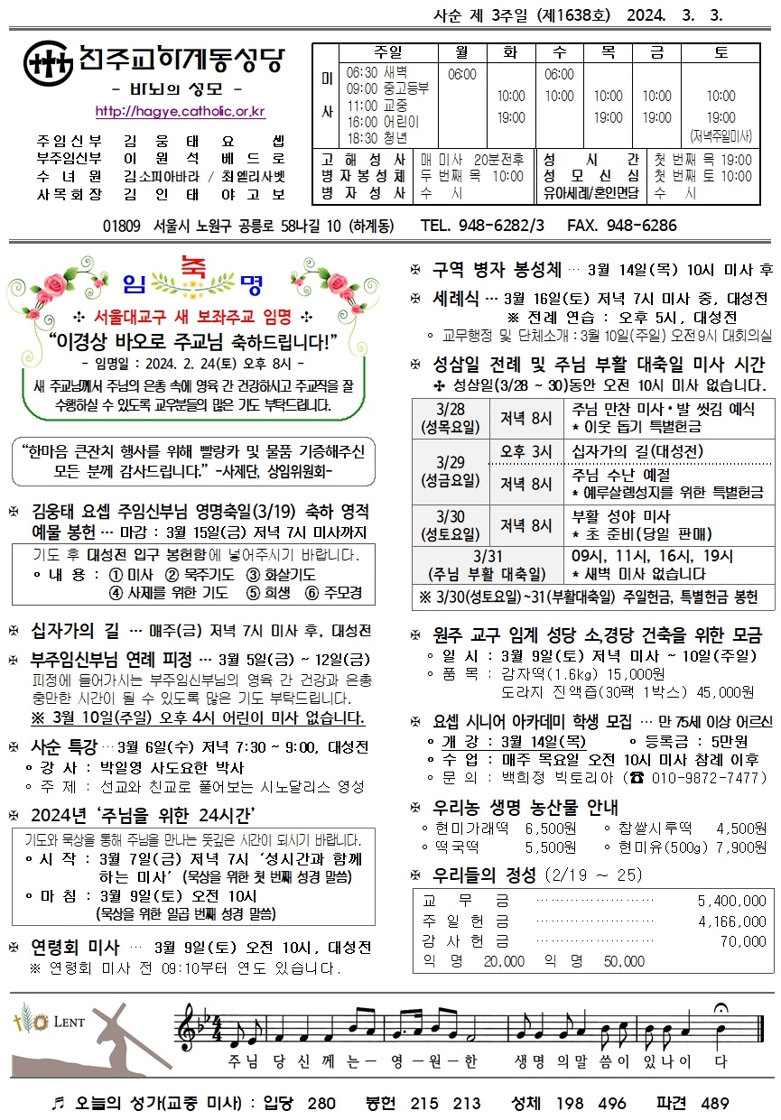 제1638호(2024. 3. 3.) 하계동성당주보 : 사순 제 3주일