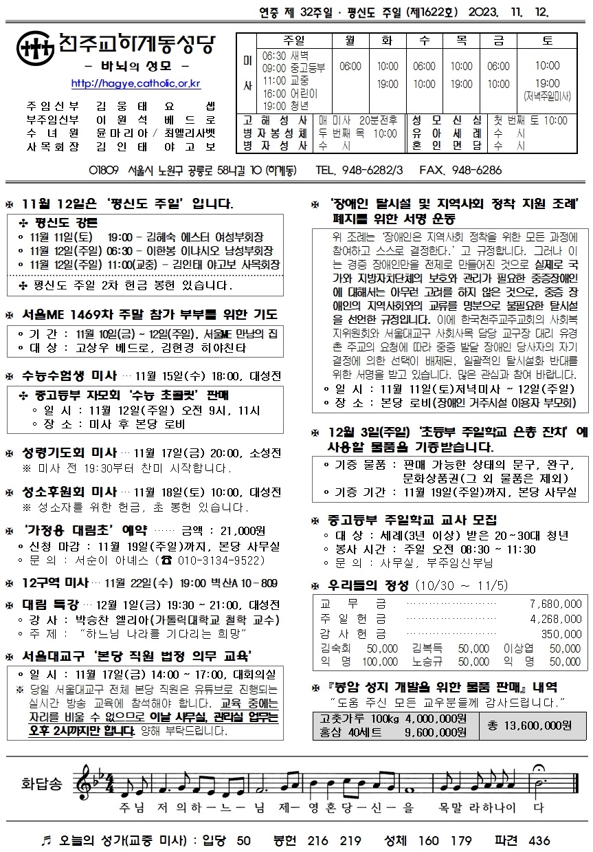제1622호(2023. 11. 12.) 하계동성당주보 : 연중 제 32주일 · 평신도 주일
